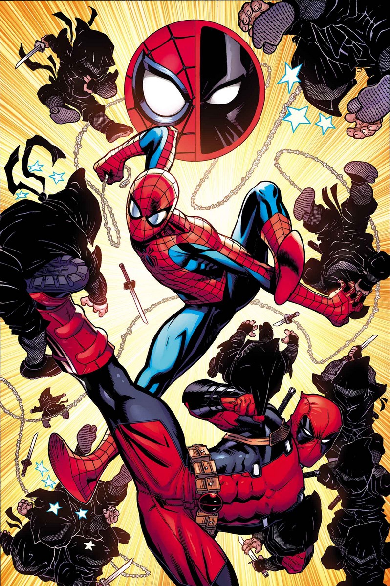 Spider-Man/Deadpool, Issue #8 resumes the "Isn't it Bromantic?" story, which so far has featured Spider-Man and Deadpool hanging out and being superheroes together all while Deadpool is secretly targeting Spider-Man's boss, Peter Parker. Deadpool obviously doesn't know that Spider-Man and Peter Parker are one in the same. Deadpool kills Spider-Man only to bring him back to life. Now, they're both after the guy who hired Deadpool to kill Peter Parker.